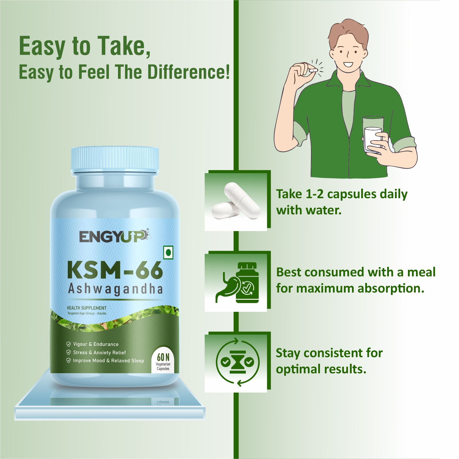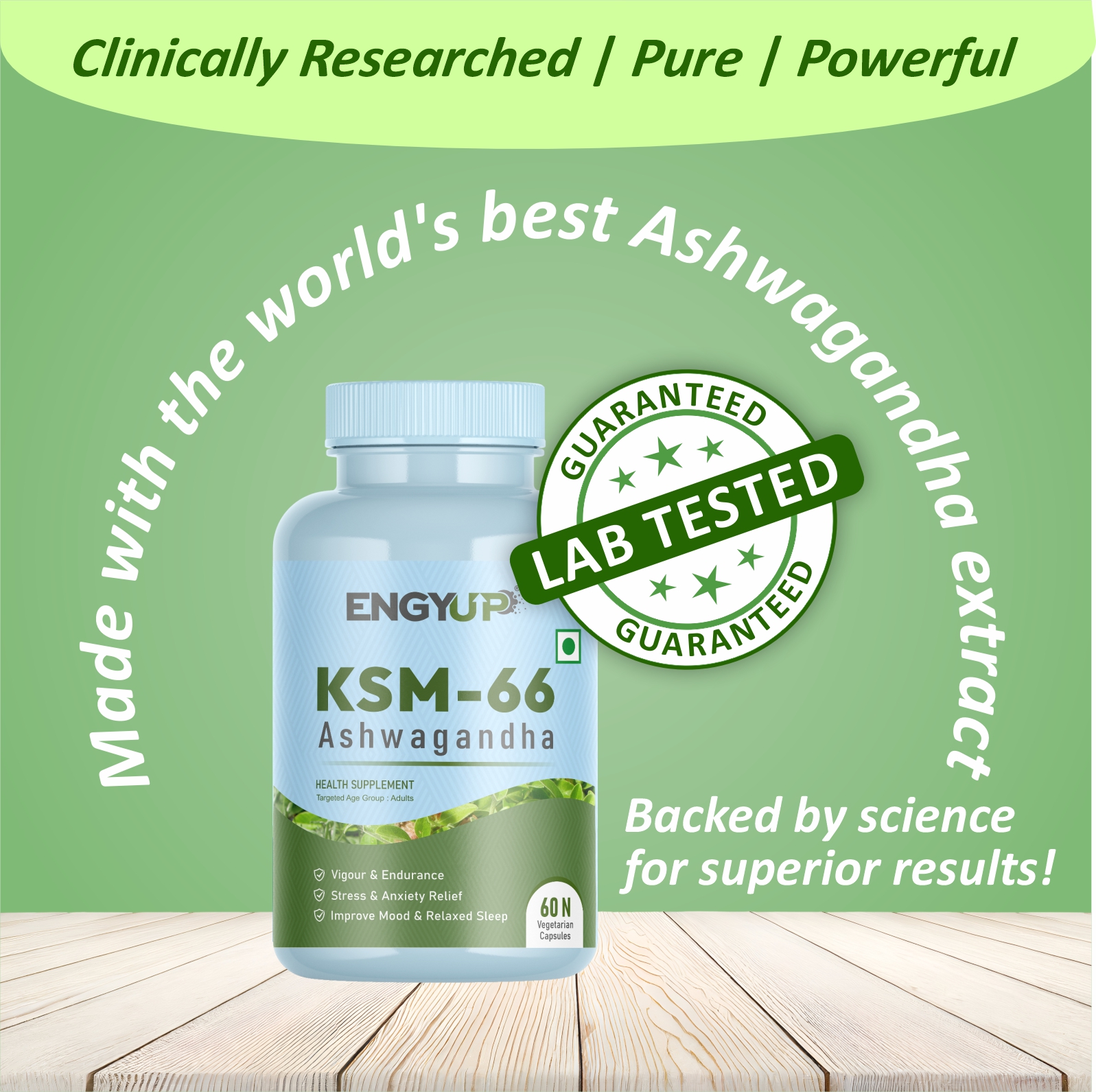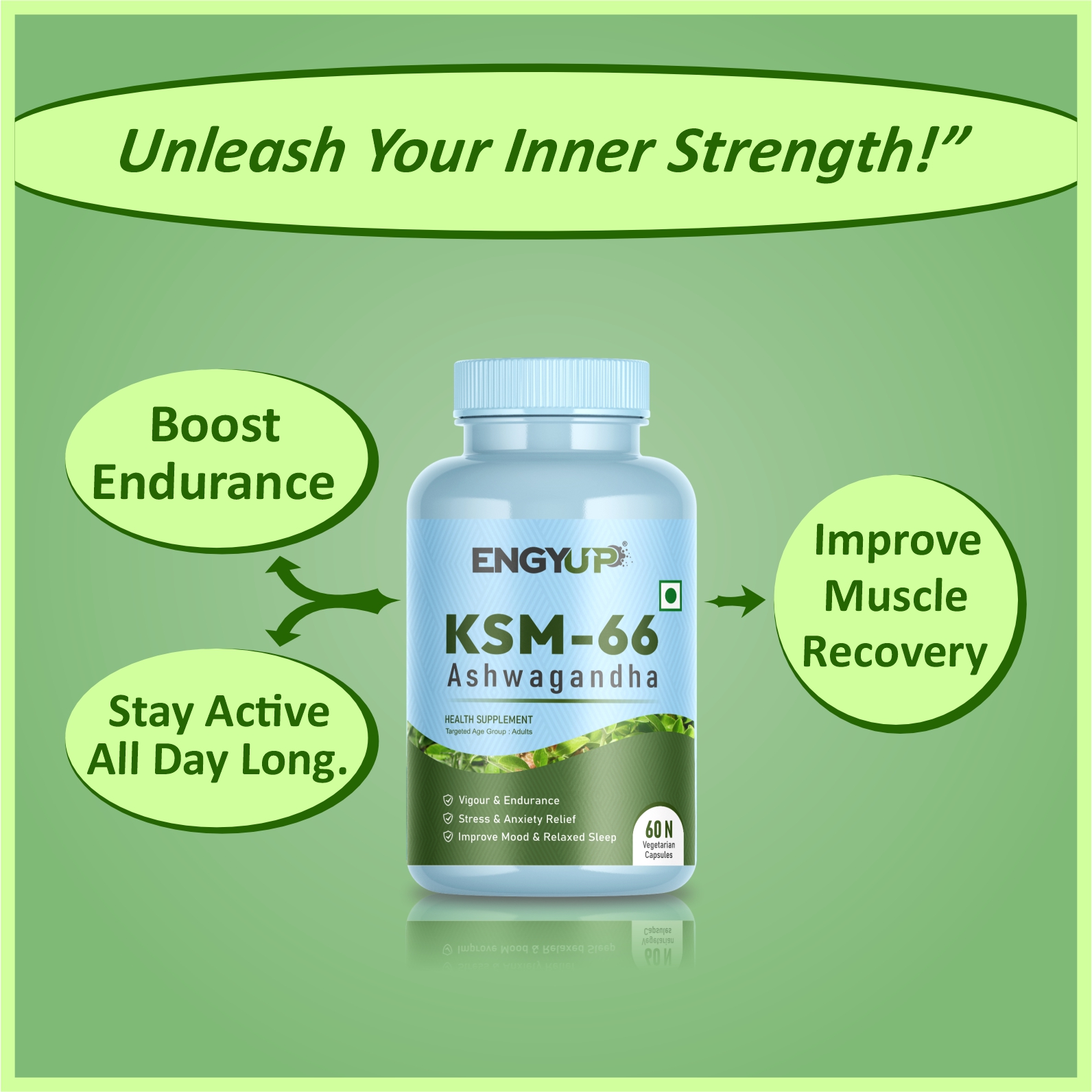 Choose ENGYUP Ashwagandha KSM-66 Capsules for a natural approach to managing stress and boosting vitality every day.
