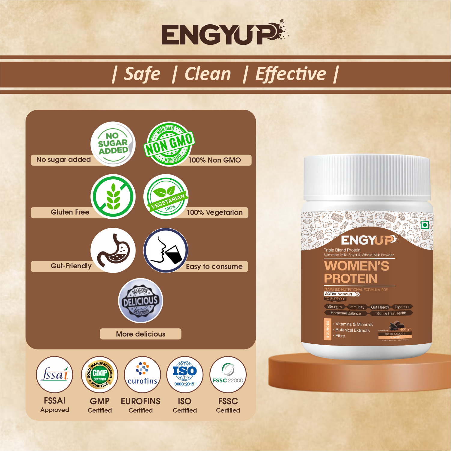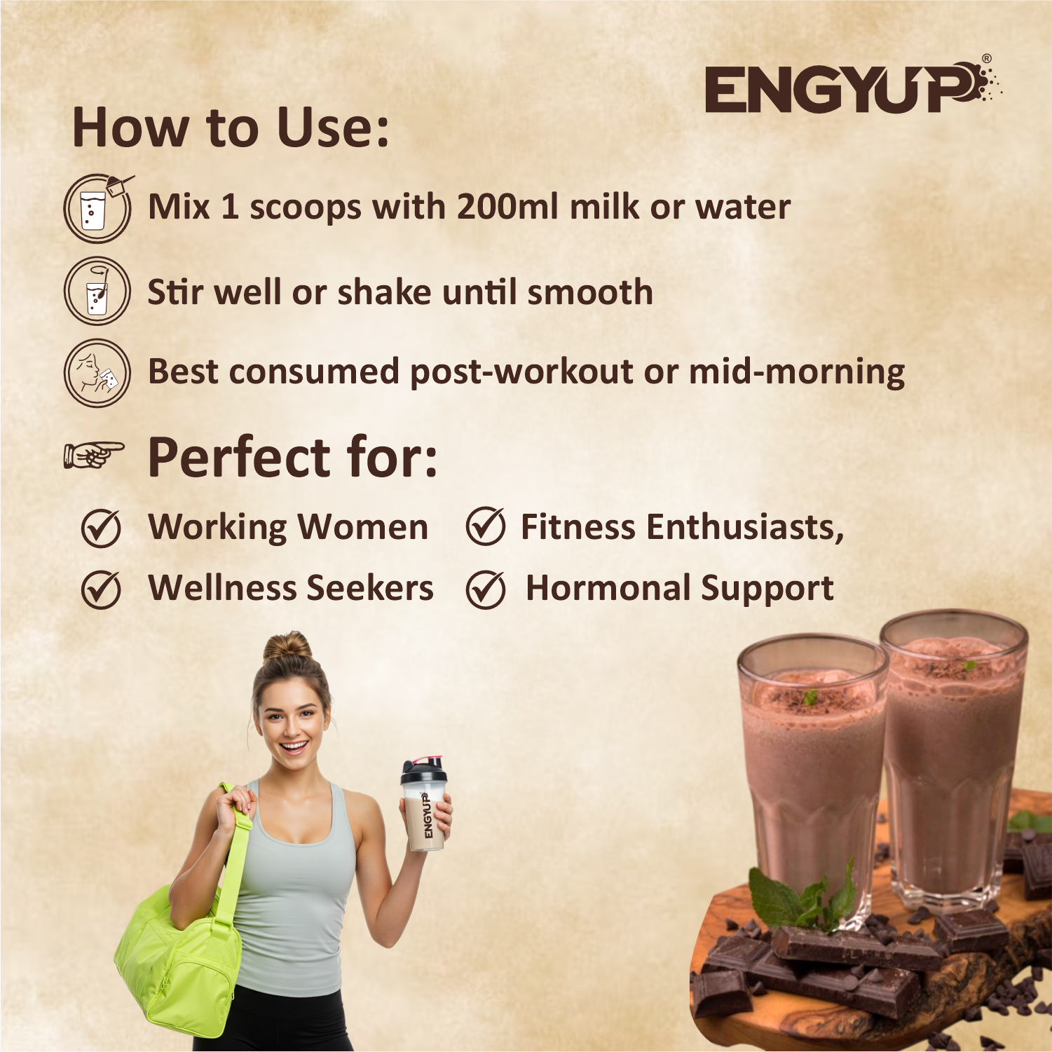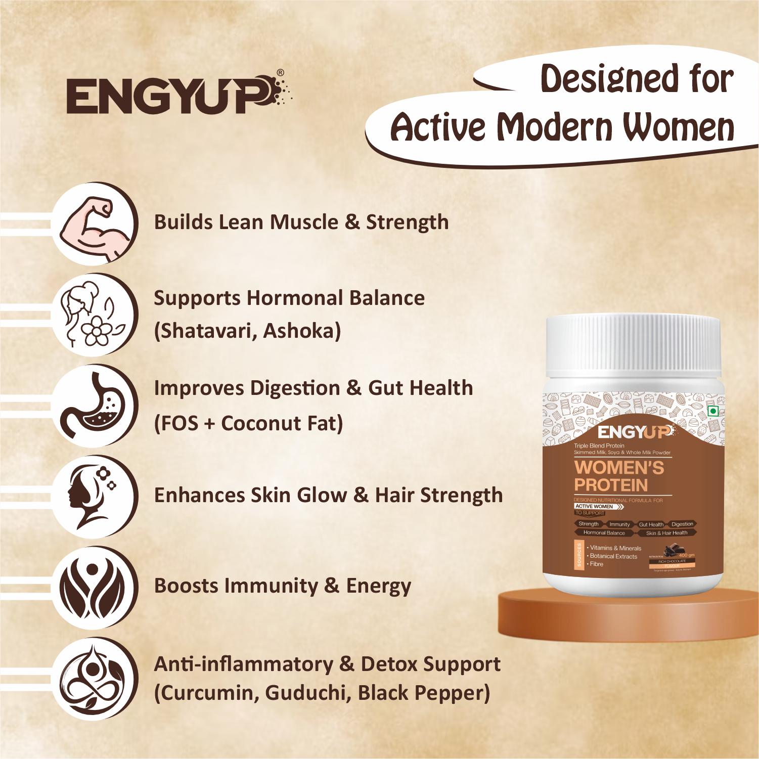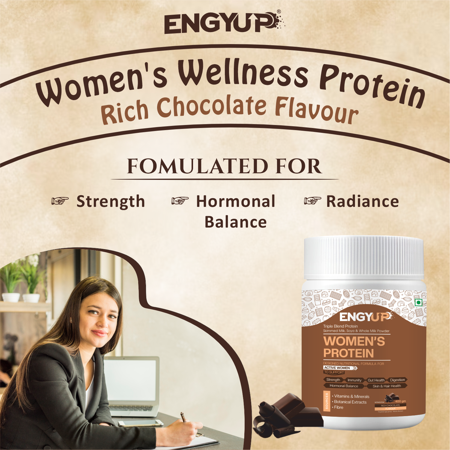 ENGYUP Protein Powder for Active Women – Triple Blend Formula with Ayurvedic Support