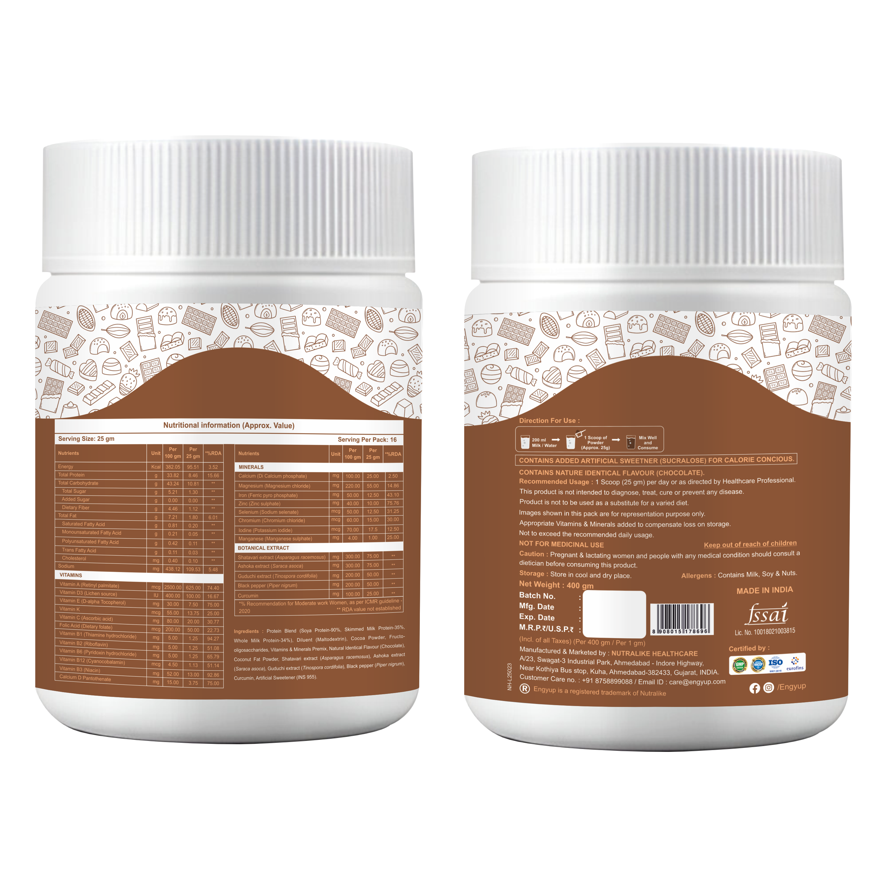 Available in a rich chocolate flavor, ENGYUP goes beyond just protein. It’s fortified with essential vitamins and minerals to support your immunity, strength, and overall wellness. For gut health, it includes fructo-oligosaccharides, while coconut fat powder provides long-lasting energy.